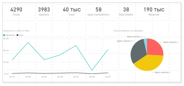 Нужно отдельно скачать таблицу с статистикой по кампаниям за месяц и ее визуализировать.