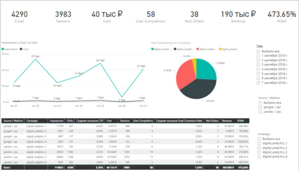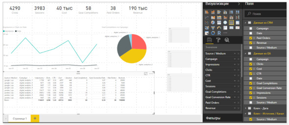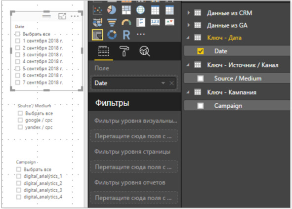 Отчет практически завершен, осталось только добавить фильтры для даты, кампании, а также источника/канала с использованием функции срезов.