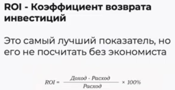 Данный показатель возврата всех инвестиций. В системе аналитики не сможете его увидеть. Это очень значимый коэффициент, который нужно обязательно считать.