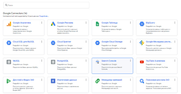 Data Studio предоставляет коннекторы ради главных продуктов Google
