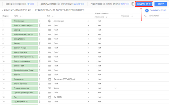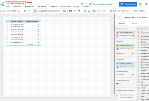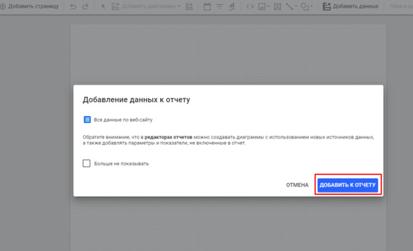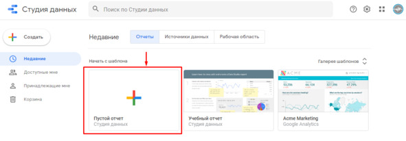 Создание отчета в Data Studio