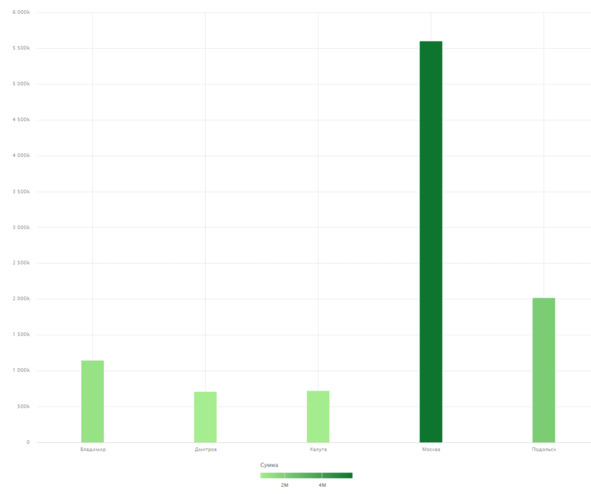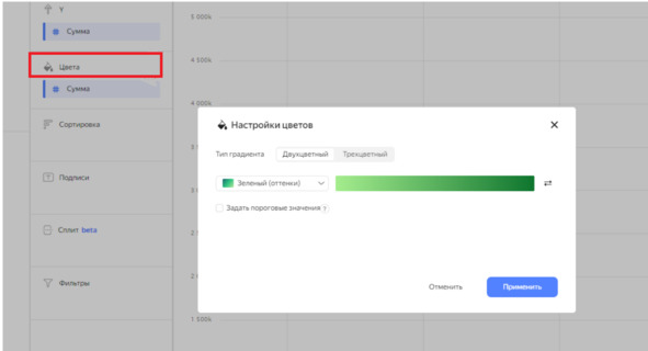 Давайте также добавим графику цветовую схему: чем больше существовало продаж, тем темнее станет отображаться колонка на графике.