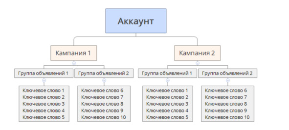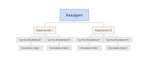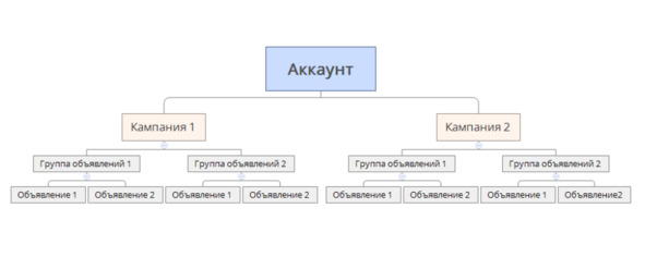 У нас есть один рекламный аккаунт и там мы создаем рекламные компании.