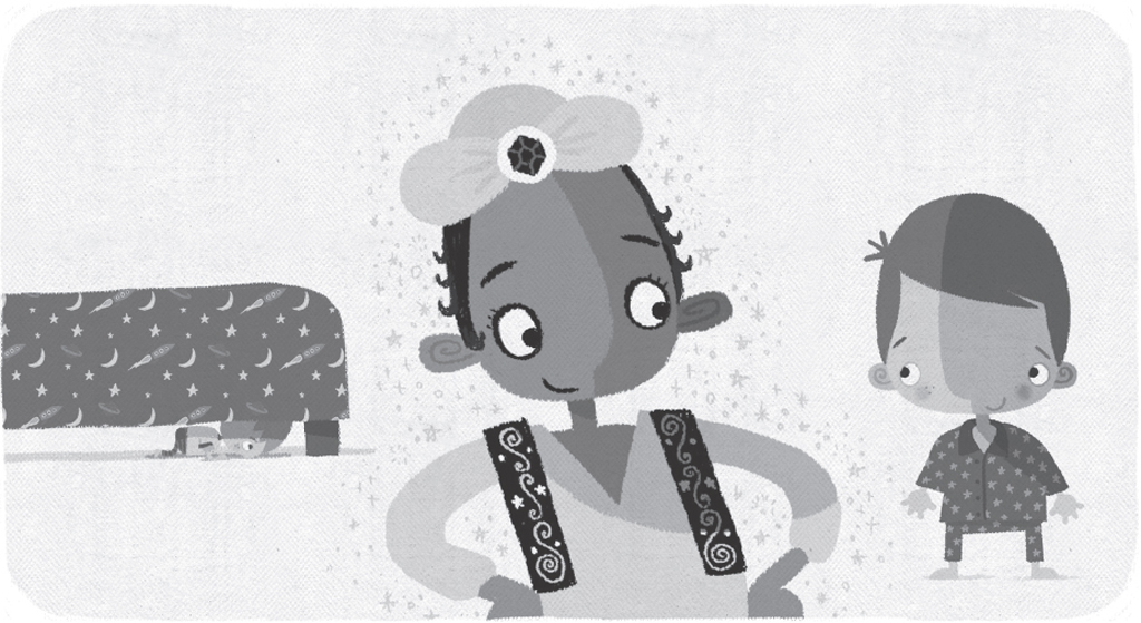 ‘Scaring me wasn’t fair,’ said Arthur, staying under the bed. ‘I just live in this room because Stanley’s my brother. It’s his lamp, and he’s the one who rubbed it.’