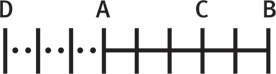 Однако, несмотря на силу отрицательных чисел, одни они не могли подарить нам современный мир. Возможно, вы заметили, что на числовой прямой Валлиса нет чисел – есть лишь отрезки, отмеченные буквами A, B, C и D. Буквы соответствуют тому, что мы обозначили бы числами 0, 5, 3 и –3, и Валлис неспроста решил отказаться от них. Еще один важнейший математический инструмент – ноль – пока не получил признания.