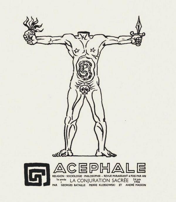 При слове «ацефал» перед глазами современного зрителя всплывает обложка одноименного журнала Жоржа Батая. Художник Андре Массон специально для издателя нарисовал безголового витрувианского человека с кинжалом в одной и горящим сердцем в другой руке.