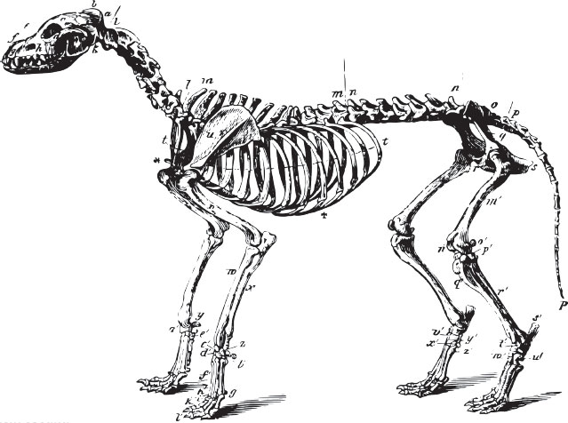Зачаточные ребра имеются иногда и на других позвонках, но настоящие ребра сочленяются лишь с грудными позвонками и, соединяясь спереди грудною костью, образуют грудную клетку. Череп у всех млекопитающих состоит из одних и тех же костей, которые и сочетаются между собою довольно однообразно, соединяясь посредством швов.