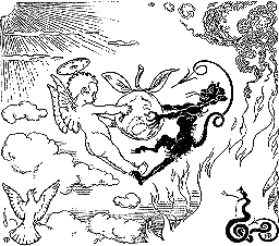 Теперь заговорил Амемон в образе толстого, цвета кишок, червя, ходящего вертикально на хвосте, сиявшем, словно светляк. У него не было ног, но пониже рта находились две короткие ручки, а на спине росли иголки, как у ежа.
