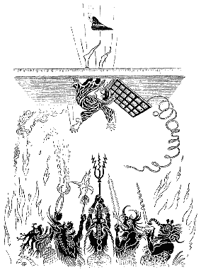 – Все, кто родился с тем, что называют совестью попадают сюда, – сказали черти. – Думаешь, ты мог бы заставить их отправиться куда-нибудь еще? В таком случае мы были бы тебе глубоко признательны. Их самомнение вызывает жалость, но оно, к тому же и надоедает, поскольку не дает нам ни минуты покоя.