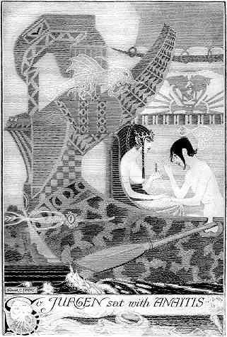 Поэтому Юрген и Анайтида сели в два высоких кресла, стоявших на носу корабля под балдахином из малиновой ткани, расшитой золотыми драконами, как раз у ростры, представлявшей собой дракона, раскрашенного тридцатью цветами; а судно вышло из гавани и направилось в открытое море. Так они миновали Энисгарт.