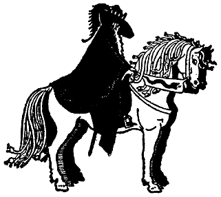 Затем Мануэль зашел на птичий двор короля Гельмаса, поймал гуся и выдернул у него из крыла перо. В этот раз Мануэль выехал разодетый, в парчовых штанах и при золотых шпорах. Статуя, которую он создал по подобию короля Гельмаса, была упакована в роскошный дорожный мешок из тисненой кожи. В этот путь, по дороге на юг, огромный Мануэль отправился на здоровенном, под стать ему, коне в яблоках, ибо денег у Мануэля теперь было полным-полно.