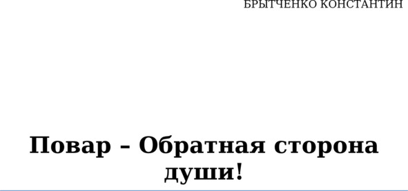 В ней описано моё личное представление о профессии Повар. Эти строки я решил объединить в одно целое – книгу, собрав некоторые истории, записи, пометки, рецепты; отмечая интересные факты и события, а так же учёл многолетний личный и опыт других поваров – тружеников этой тяжёлой и многосторонней профессии.