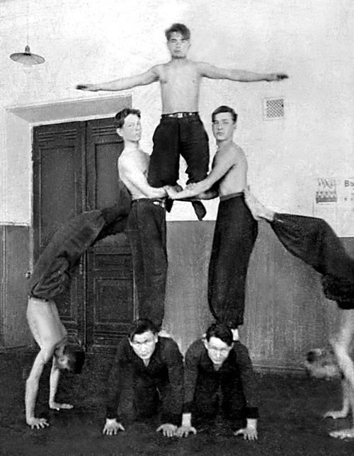 Гимнастическая группа, 1941 год: Лунегов, Фофанов, Светлаков, Н. Брюхов, Пенегин, Титов, Василий Брюхов