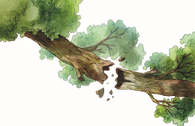 Самая верхняя ветка старого дуба, та, в которой размещалась спаленка Лотара, рухнула с оглушительным грохотом. На глазах потрясённой толпы она врезалась в витрину, и та разлетелась на тысячи осколков.