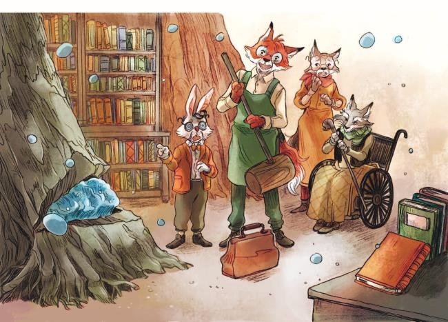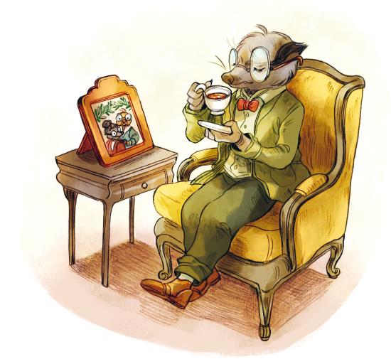 Свернувшись клубочком в своём любимом глубоком кресле, Крот Руссо наслаждался душистым чаем с лепестками роз, смотрел на портреты своих родителей и размышлял о том, как быстро течёт время. Потом он вспомнил тот счастливый день, когда ему в голову пришла мысль обустроить библиотеку в стволе одного из самых старых деревьев в Зелёном Бору.