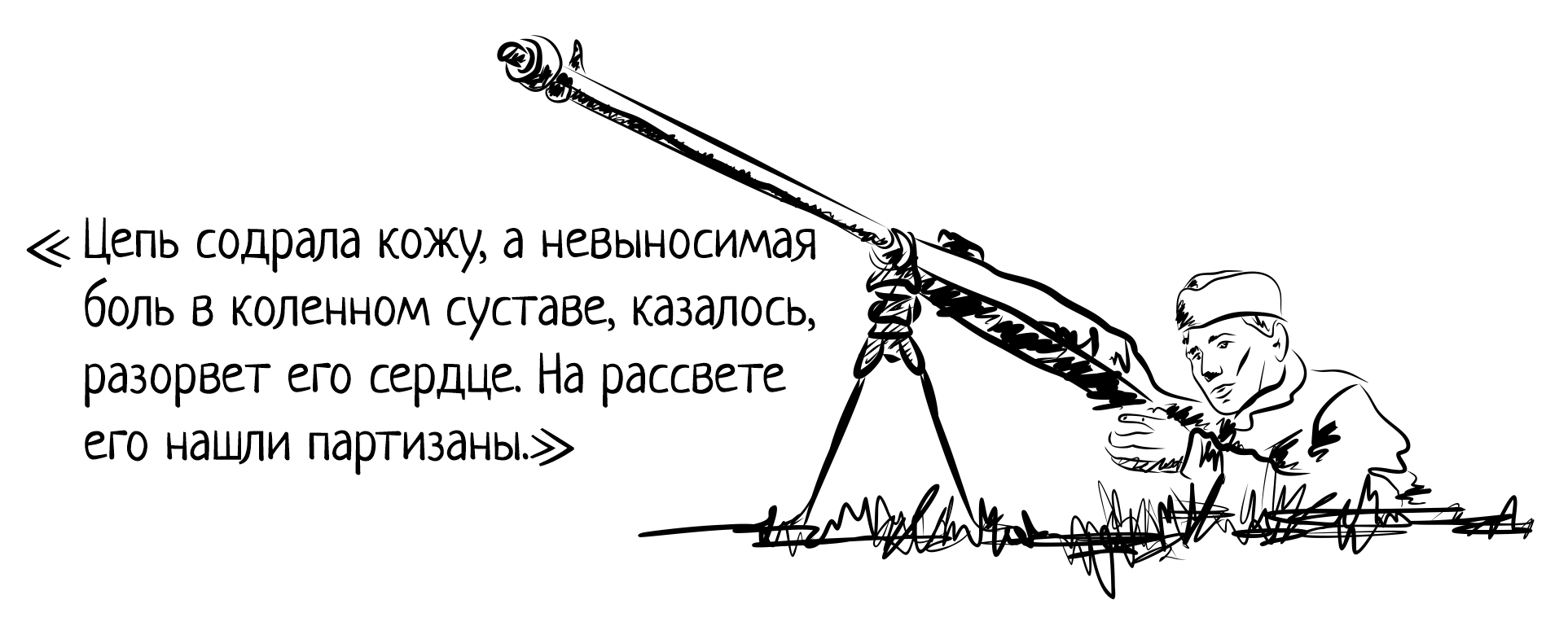 Тяжело было слушать историю, которую пережил Зелик. Попал он в штрафной батальон, или, как его называли, «батальон смертников». Батальон составляли бывшие заключенные и люди, имевшие плохую репутацию. Они должны были быть на самой передовой, буквально преграждая своими телами путь немцам и давая советской армии возможность собраться силами. Шел бой. Советская армия отступала. Зелика и еще двух оставшихся в живых штрафников оставили в поле прикрывать отход советских войск. Чтобы солдаты не убежали и не оставили позиций, пулеметы приковали тяжелой металлической цепью к их ногам. Советские войска скрылись из виду, на горизонте показались немцы. И в широком поле из окопов их встретила пулеметная очередь трех бойцов. Бой был не на жизнь, а на смерть. Два Зеликиных товарища погибли и он, с трудом передвигаясь, таща за собой пулемет, стал стрелять поочередно то из левого, то из правого пулемета, чтобы немцы не подумали, что он остался один. Дело шло к вечеру. Боясь наступать в темноте и нападения партизан, которые могли быть в видневшемся за полем лесу, немцы отступили, чтобы переночевать в близлежащей деревне и с утра пойти в наступление. Зелик, оставшись на поле совсем один, решил двигаться в направлении леса. Путь, который налегке он прошел бы за пятнадцать минут, он смог преодолеть лишь к полуночи. Он полз, таща за собой прикованный к ноге пулемет. Цепь содрала кожу, а невыносимая боль в коленном суставе, казалось, разорвет его сердце. На рассвете его нашли партизаны. Он лежал без сознания в луже крови. Разведывательным самолетом его отправили в госпиталь на Большую Землю. Ногу спасти не удалось.