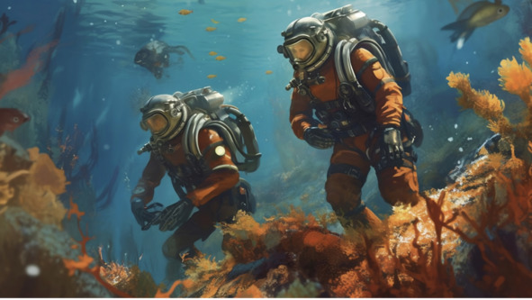 Мы еще долго стояли с Растригиным и с интересом наблюдали за сборкой подводного дома. Наконец, дом—«колокол» был собран. Но прежде чем опускать его, водолазы развернули на дне бухты подсобные сооружения: большой закрытый бассейн для дельфинов, малый бассейн для морского льва и несколько помещений для хранения пищи и аппаратуры. Когда все было готово к установке «колокола», я спросил у руководителя бригады сборщиков разрешения посмотреть на процесс из воды. Мне быстро выдали легкий водолазный скафандр, и я по трапу спустился в воду. В легком глубоководном скафандре я чувствовал себя превосходно. Шлем, сделанный из нескольких слоев стекла и пластмассы, обеспечивал очень хороший обзор. Даже на изгибах, где сквозь обычное стекло в воде ничего нельзя было бы рассмотреть, слоеное стекло лишь слегка затемняло изображение, делая его как бы затуманенным. Встроенный в шлем ультразвуковой телефон обеспечивал связь с другими водолазами и кораблем-базой. Кроме того, на спине устанавливался небольшой водометный двигатель, который позволял передвигаться достаточно быстро, но при первом спуске включать его мне запретили.