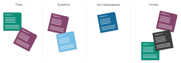 Другой пример – использование канбан-доски, которая тоже ничего не автоматизирует по умолчанию, но отлично визуализирует загрузку людей и позволяет перестроить рабочий процесс, выявлять узкие места и проблемные задачи, эффективнее работать с информацией и быть свободнее – работать за любым устройством с выходом в Интернет. При этом производительность команды порой вырастает на 40—50%.