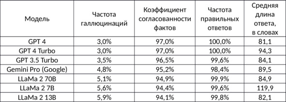Ниже приведена статистика для LLM моделей от разных производителей.