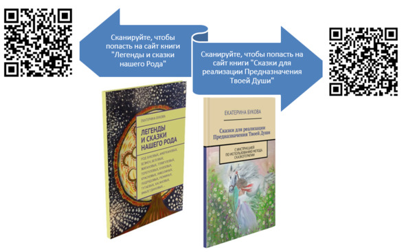 Надо сказать, что эта книга не первая, изданная мною по теме Рода. В 2008 году были опубликованы: «Легенды и сказки нашего Рода» и «Сказки для реализации Предназначения Твоей Души», для перехода на интернет-страницы этих книг прошу сканировать следующие QR-коды :