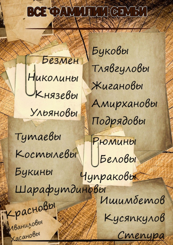 Было изучено огромное количество документов: ревизские сказки, сведения о наградах и военных событиях, в которых участвовали наши предки, материалы Государственного архива Российской Федерации, Башархива.