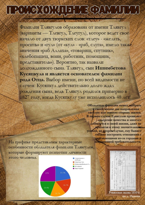 Отцовское имя – самый распространенный вариант получения фамилии. Как я и писала ранее, большинству хватало лишь имени и отчества, когда же пришло время взять фамилию, то обычные мужики решили не заморачиваться и просто взять по батюшке. Отсюда и появились Петровы, Ивановы, Сидоровы и Давыдовы. Именно так у Рода моего отца получилась фамилия Тлявгуловы: