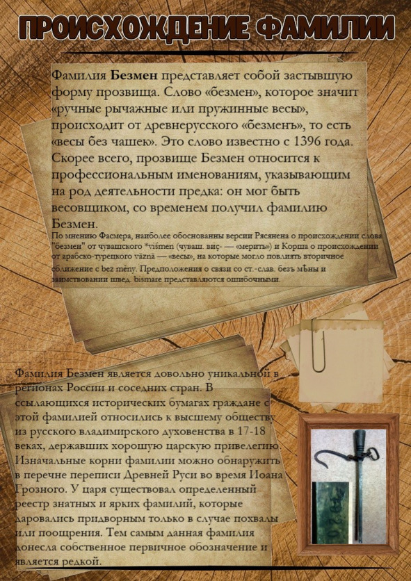 Происхождение фамилии Безмен