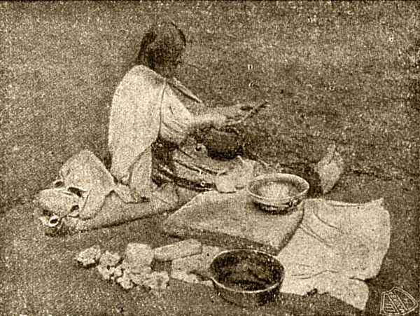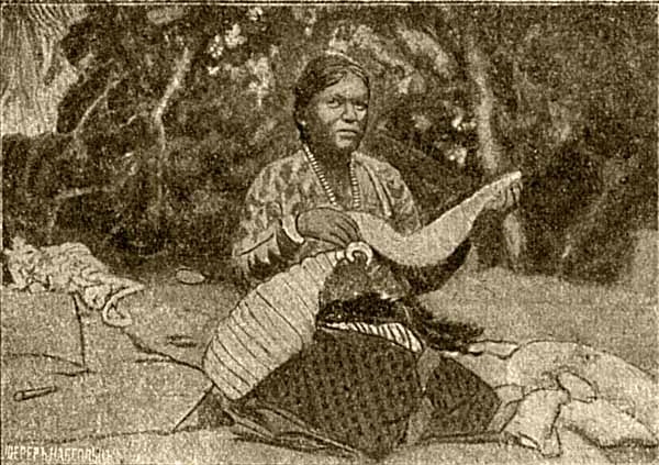 Дети любили эту работу матери и обыкновенно при этом не отходили от нее ни на шаг, всячески стараясь ей помогать, а Белое Облако сама могла делать такую же посуду, как и мать.