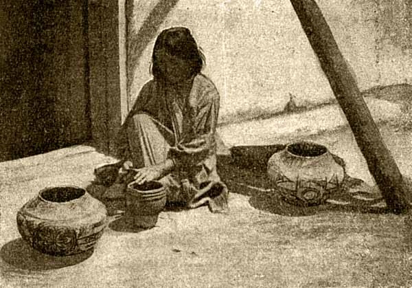 Увидела мать это и попробовала слепить себе другой горшок. Слепив его, она стала держать его на огне, долго держала, а потом, когда он остыл, налила водой. Вода не размочила горшка. Мать сделала другой горшок, опять обожгла его на костре, – вода держалась. Тогда об этом узнал вождь племени и сказал другим женщинам, чтобы поучились у этой женщины делать горшки. И с тех пор индейцы умеют делать горшки.