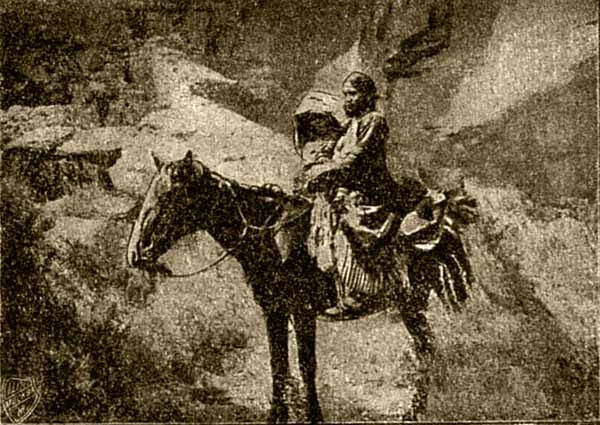 Заячий След привел и оседлал матери лошадь, и она, захватив ребенка и одеяло, отправилась к купцу продавать его. Долго ей пришлось ехать, и когда она принесла купцу одеяло, он, правда, дал ей и кукурузы, и пшеницы, и соли, но всего дал меньше, чем в прошлом году. Мать смотрела на него удивленно, спрашивая на ломаном языке, почему она получила теперь меньше, чем в прошлом году. Купец старался разъяснить ей, что в прошлом году был урожай, все было дешевле, а теперь будет неурожай, засуха, все становится дороже, вот он и дает ей меньше.
