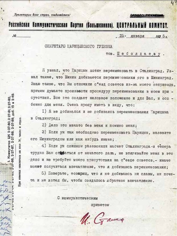 Если кто-то не верит в закономерность цепочек, происходящих событий, то это его проблема, но будь Сталин «понастойчивей», Царицын преобразовался бы в никчемный Мининград, то остался (по крайней мере до 1961 или 1991 г.г.) малоизвестным российским городком нижнего Поволжья Саратовской области.