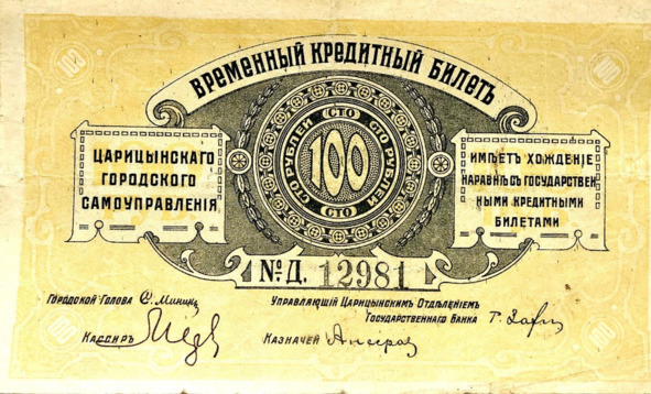 «Мининка» – валюта Царицынского городского самоуправления номиналом сто рублей