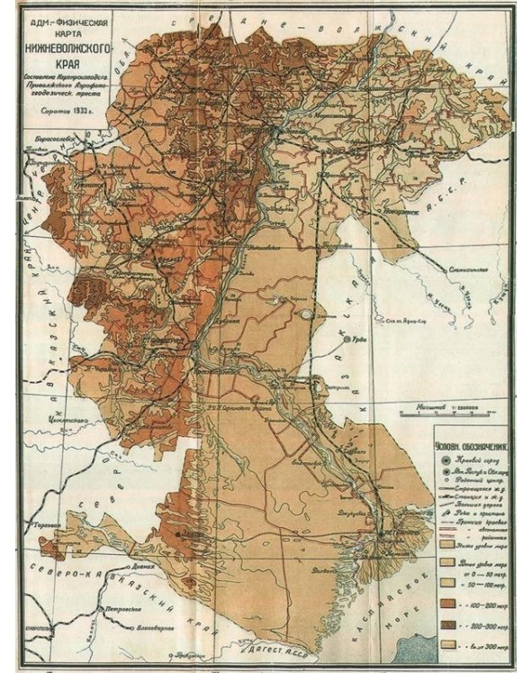 Административно-физическая карта Нижневолжского края, 1932 г.