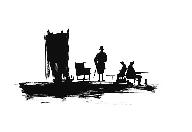 Хлопочущая около костра фигура нервно подскакивает к толпе.