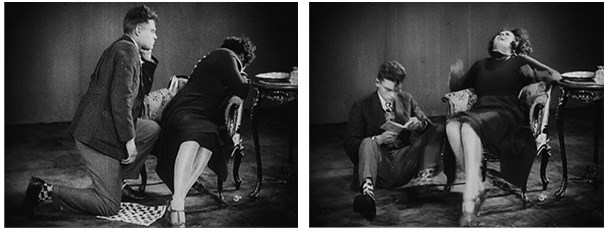 У Эйзенштейна в «Стачке» эротизированное танго исполняется лилипутами. В фильме «Старое и новое» эффектное курение отдается не гибкому телу вамп, а неуклюжей комической старухе, имитирующей изгибы тела тангисток: толстая дама сидит, небрежно закинув ногу на ногу, перебирает бусы, как четки, подчеркивая свой необъятный бюст игрой кисти, и превращается в гротескного монстра. Это не просто «советский бюрократ», но женщина алькова, переносящая техники тела из ситуации интимного соблазнения (салона, будуара) в официальную, «трезвую» сферу бюро, и режиссер издевается над неадекватностью старого телесного поведения в пространстве новых форм коммуникации.