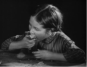 Представление техник еды на экране в 1920‐е годы достаточно амбивалентно. Несмотря на энергетическую заразительность физиологичной манеры еды у героя Олеши, в большинстве фильмов того времени еда сохраняется как отталкивающая характеристика отрицательных героев. Рабочие в фильмах о старом времени голодают и сидят перед пустыми тарелками. Еда и туалет в «Цементе» описаны лишь у детей (умирающих от голода), и то – как действия крайне непривлекательные: они ищут съестное в отбросах, роются «торопливо, жадно, по-воровски, с оглядкой»; «рвут друг у друга добычу»; кто-то «алчно грызет, жует и захлебывается слюной, а ручонки работают у рта» (34); при этом дети «чесали головенки и под мышками. Чумазый дитенок шмугает мокрым носом, глотает сопельки и ‹…› царапает под рубашкой грязную грудь» (37).