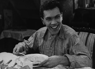 Изысканными манерами за столом не обладает ни одна социальная группа на экране. Техники еды у горожан, крестьян и интеллигентов, вернее, то, как они представлены, сближаются, что создает особую «деритуализованность» манер. За столом никто не пользуется ножом, только ложкой и вилкой. Чай из блюдечка теперь пьют не только купцы и крестьяне, но интеллигенты и чиновники, а за ними – и «графиня» у Кулешова. Никто из новых героев не пользуется салфетками. Крестьяне и рабочие в «Конце Санкт-Петербурга» отирают рот тыльной стороной ладони; в «Обломке империи» рабочие, посаженные в образцовую фабричную столовую, утирают рот руками и рукавами; городская женщина ест стоя и, прежде чем надкусить яблоко, по-деревенски трет его о рукав платья; интеллигент пьет чай, оттопырив мизинец, как «мещанин», сплевывает во время еды на пол, как крестьянин, хотя пользуется салфеткой. В «Третьей Мещанской» бьющая через край энергия героя играется через его манеру есть – Николай Баталов бурно двигает челюстями, чавкает, размахивает вилкой в правой руке, прихлебывает из блюдечка. Но именно этот фильм намечает коренной слом в оценке «витального» героя.