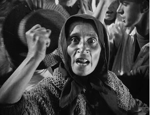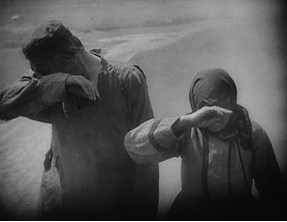 В дореволюционных фильмах телесный язык крестьян был представлен стереотипом «славянского молодца». О нем напоминают только пожилые непрофессиональные (!) исполнители у Пудовкина в «Конце Санкт-Петербурга» и у Эйзенштейна в «Старом и новом». Их указательные и утвердительные жесты, приветствие и прощание исполняются парными, синхронными, дугообразными и плавными движениями обеих рук, при которых правая рука дублирует левую симметричным повтором, что свидетельствует об укорененности этого телесного поведения не только в штампах репрезентации, но и в сохранившейся культуре ритуального жеста. Манера отламывать и есть хлеб руками, ловко ходить босиком, удобно сидеть и лежать на земле (и на городской мостовой) в «Конце Санкт-Петербурга», манера смеяться, закрывая рот, парные «амфорические» всплески рук, рабочие техники косьбы и пахания, позирование перед камерой, как перед фотоаппаратом, в «Старом и новом» (мужчина, упершись одной рукой в бок, как былинный богатырь, и женщина, скрестив руки на груди) – кинодокументы еще не уничтоженной бытовой культуры и обрядовости.