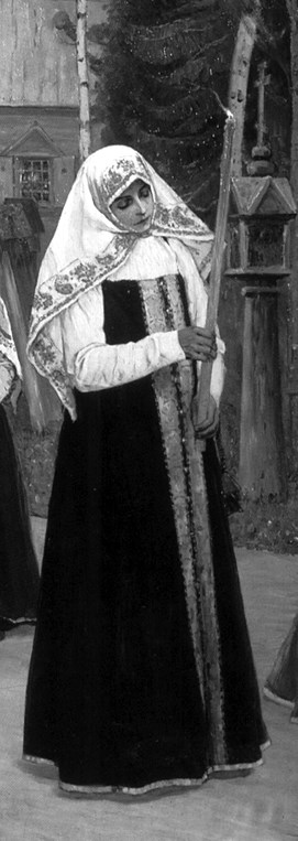 Прямая спина и поднятая голова зарезервированы для парадных портретов царей, дворян, чиновников, красавиц (ср. парадные портреты Репина[118]). Склоненная набок головка девушки – знак грациозности. Он действителен для монахини Нестерова, фольклорной девы Васнецова, дам Борисова-Мусатова, красавиц на плакатах и рекламных анонсах и неорусского стиля, и стиля модерн. После революции первое, что изменяется в плакатной графике (а позже – в живописи и скульптуре), – появляется выпрямленная спина у рабочих и выкаченная вперед грудь у работниц[119].