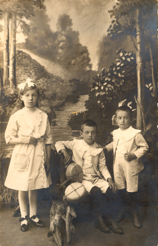 Стоят слева направо: Вера, Михаил, Иван. Сидят: Мария, Надежда, Сергей, о. Серапион, Василий. Город Яранск, 1916 год.