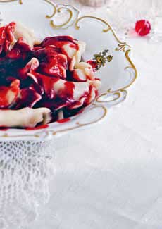 Она накладывает всегда большую тарелку с горкой, заливает вишневым соусом и, конечно, настаивает, чтобы я съела всё до пустого донышка.