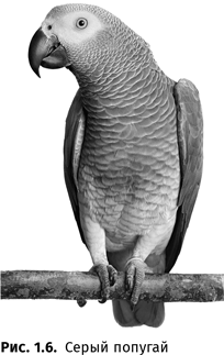 Незаурядные способности в области овладения человеческим языком продемонстрировал в опыте Айрин Пепперберг серый попугай Алекс (жако, Psittacus erithacus)39. За 30 лет он научился понимать (и произносить!) более полусотни названий разных предметов (ключ, прищепка, пробка, орех, макароны…), семь названий цветов, пять вариантов форм (треугольник, круг…), несколько разновидностей материалов (дерево, кожа, пластик…), числа до восьми, названия мест, слова «одинаковый», «разный», «нет», «хочу», «пойти» и т. д. Он оказался способен отвечать на вопросы типа «Сколько здесь деревянных предметов?», «Какого цвета больший [из предметов]?», причем даже в тех случаях, когда эти предметы он видел впервые.