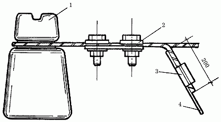 Рис. 25. Правильное крепление провода к изолятору зажимом: 1 – изолятор; 2 – зажим ПАБ; 3 – зажим ОАС; 4 – провод ввода
