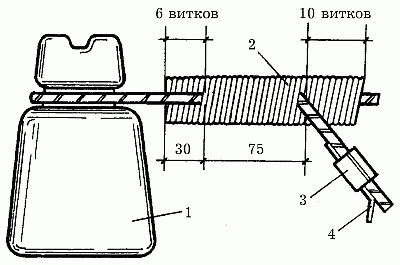 Возможно применение для этой цели бандажной вязки. При этом длина забандажированного участка провода должна составлять 75 мм, бандаж надежно закрепляет на проводе ответвления со стороны изолятора 6 витками, со стороны подходящего к изолятору участка провода 10 витками (рис. 26).