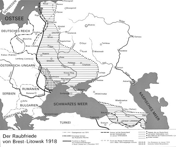 Не будь Брестского мира, поражение Германии было бы неизбежно на протяжении первых 2–3 месяцев 1918 года. Выход России из войны позволил Германии протянуть войну до осени 1918 года.