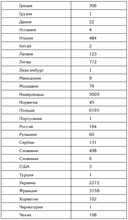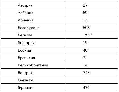 Распределение получивших звание «праведник мира» по странам (на 1 января 2010):
