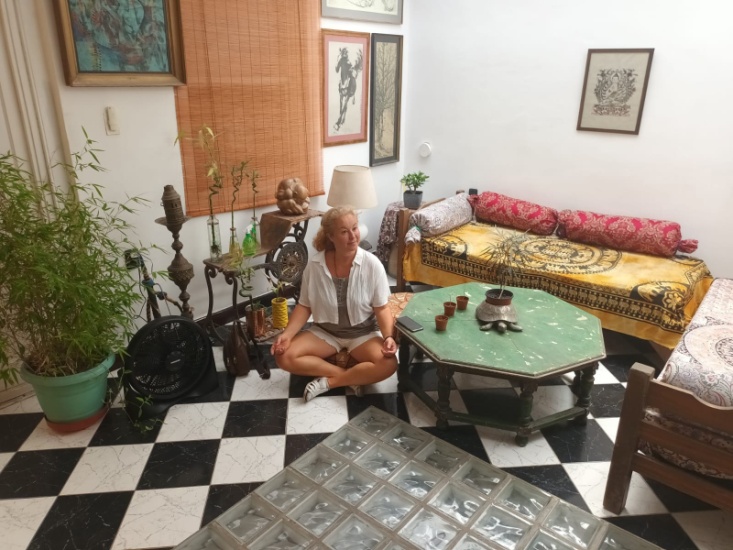 Что-то вроде нашей обычной коммуналки, но отремонтированной и превращённой в коливинг. Здесь довольно много жильцов. У каждого есть своя комната, и есть места общего пользования. Кухня общая, несколько "тусовочных" комнат, туалеты и душевые, комната для медитаций, огромный оборудованный для отдыха и приема пищи балкон. Точнее даже не балкон, а крыша. Здесь, в столице Уругвая, Монтевидео, крыши очень часто используются для обустройства мест отдыха.