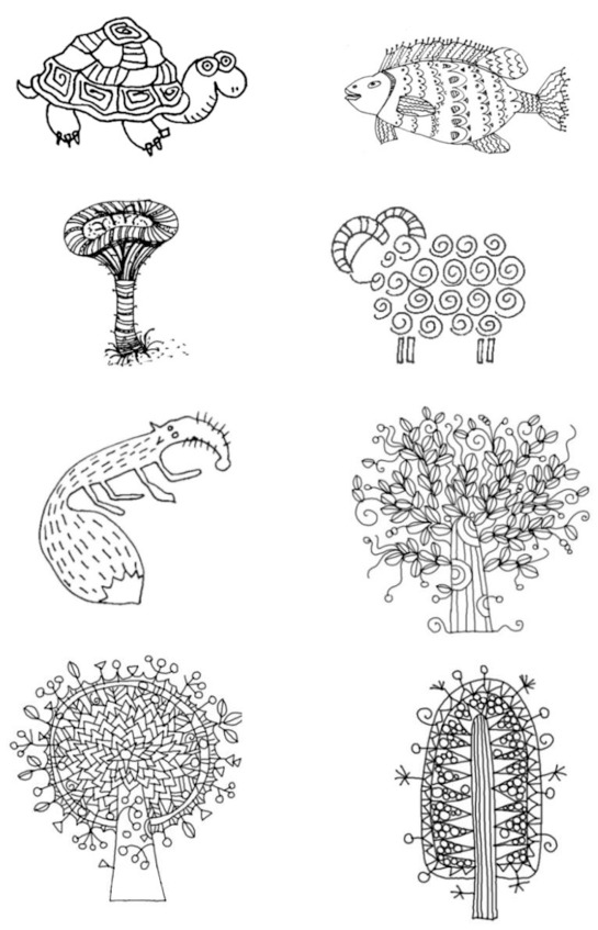 We learned to draw signs with a beautiful flexible quality line. We made sure that signs change dramatically thanks to rhythm and décor. We collected quite a lot of figurative signs and now we want something more, that is we want signs to become more original, maybe unusual, strange, out of the box, different from regular, often seen forms (like pronounced words can become, for example, screams or whisper). So, this is the variation of a figurative sign.