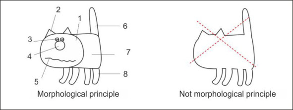 Drawing carefully each morphological element of the sign from the viewpoint of function.
