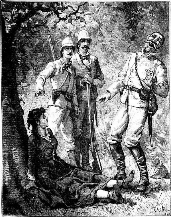 Фрике́ был совершенно прав на этот раз. После подобной передряги другая чувствовала бы себя совершенно разбитой, но не madame Барбантон. Несмотря на пятичасовую тряску в неудобных носилках, она преспокойно сидела под деревом и, как ни в чем не бывало, с аппетитом уписывала холодное мясо с бананом вместо хлеба.